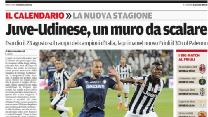 Messaggero Veneto: Juve-Udinese, un muro da scalare