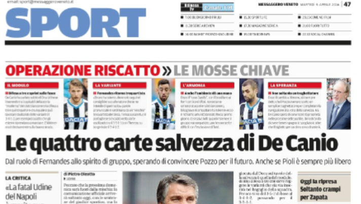 Apertura sportiva del Messaggero Veneto con le mosse vincenti targate De Canio.