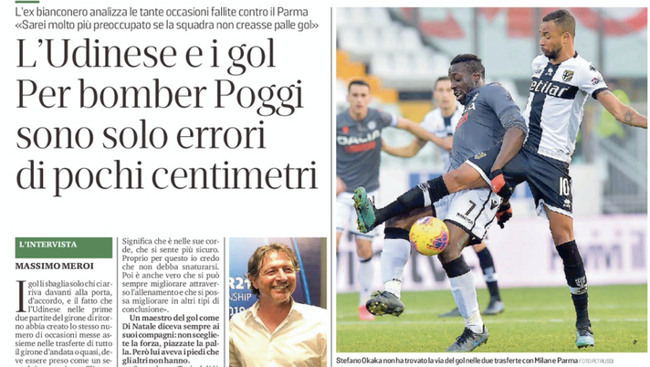 Messaggero Veneto: L’Udinese e i gol Per bomber Poggi sono solo errori di pochi centimetri