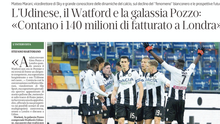 Andai a trovare Gino Pozzo a Londra quando ancora il Watford non era in Premier e mi trovai di fronte un dirigente competente, ma soprattutto lungimirante e con l'Udinese nel cuore...». Comincia così la conversazione con Matteo Marani, vicedirettore di Sky Sport, ma soprattutto giornalista sportivo appassionato di storie e pallone che, mettendosi sulle tracce di Pozzo junior, ne ha trovata una da approfondire, offrendo la sua prospettiva sui possibili scenari di una multiproprietà controversa, amata a Londra e discussa a Udine.Mariani, la galassia Pozzo comprende Watford e Udinese, ma queste due realtà non stanno sulla stessa orbita.«Perché il Watford incassa 102 milioni di euro a stagione di soli diritti tv e con i ricavi complessivi sale oltre ai 140 milioni di fatturato. L'ultimo bilancio dell'Udinese è stato di 69.4 milioni, quindi il Watford fattura il doppio, ma prende anche più della Juventus alla voce diritti tv, considerato che a Torino ne entrano 90, e sono cifre a cui un imprenditore non può non guardare».E secondo lei, Gino Pozzo che imprenditore è?«Concreto, innovativo. Ha capito prima di altri quanto il calcio inglese stesse diventando un mercato d'avanguardia».A Sky passate al setaccio squadre e società assieme agli esperti: come viene vista la galassia dei Pozzo, con due gestioni così diverse da seguire?«La proprietà ha sviluppato una grandissima capacità di fare impresa dopo gli errori commessi all'inizio. Secondo me nessun proprietario arriva a Gino Pozzo come competenza calcistica, ma quel che più conta è il giudizio degli allenatori con cui ha avuto a che fare, che lo ritengono più competente di molti dirigenti».Non tutti i tifosi del'Udinese sembrano pensarla così, forse per gli ultimi sei anni bianconeri...«Nei sette anni precedenti agli ultimi sette l'Udinese è arrivata sei volte in Europa. È stata l'Atalanta incensata da tutti adesso, ma che invece è un modello diverso perché oggi la Dea viaggia a 150 milioni all'anno di fatturato, con un centro sportivo per i giovani che fa invidia a quelli delle prime squadre di molti altri club».D'accordo, ma da troppo tempo l'Udinese non è più quella che era. Perché?«Perché non è più la casa madre dal punto di vista industriale, semplice. Lo è stata fino a quando i Pozzo si sono fatti allettare dal progetto inglese, con tutti i ricavi di cui sopra, acquisendo il Watford. Tuttavia, bisogna anche calarsi nei panni di un imprenditore che ha un club nella Nba del calcio, quale è la Premier, anche se capisco che i friulani vorrebbero l'Udinese davanti a tutto». (...)