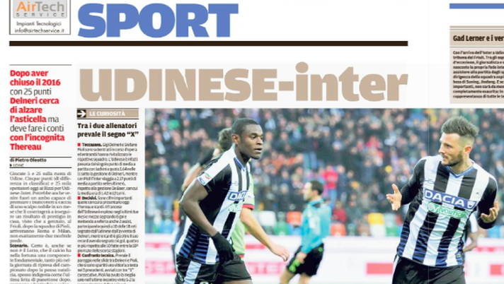 Apertura del Messaggero Veneto sulla presentazione di Udinese-Inter.