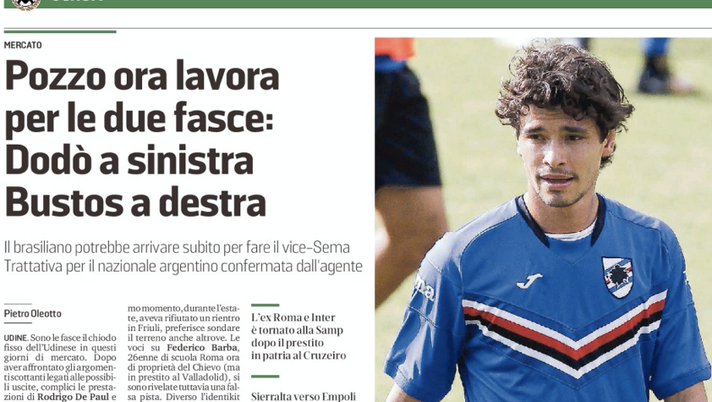 E senza ombra di dubbio il "buco" presente fin dallo scorso agosto è sulla fascia sinistra, dove il buon Ken Sema è solo e l'unica alternativa è sistemare Jens Stryger Larsen spostandolo di corsia per una posizioneche conosce bene visto che è là che gioca con la nazionale danese. Ma obiettivamente qui, in serie A, è sulla destra che rende di più.Così fin dalla gestione Igor Tudor l'ipotesi di un ritorno di Marvin Zeegelaar dal Watford (dove non vede il campo) è stata presa in considerazione e tutt'ora restiste, anche se Gino Pozzo, dopo il comportamento dell'olandese che in un primo momento, durante l'estate, aveva rifiutato un rientro in Friuli, preferisce sondare il terreno anche altrove. Le voci su Federico Barba, 26enne di scuola Roma ora di proprietà del Chievo (ma in prestito al Valladolid), si sono rivelate tuttavia una falsa pista. Diverso l'identikit del mancino che l'Udinese vorrebbe avere in squadra per non correre rischi nel caso di un forfait di Sema, così nelle ultime ore l'ipotesi di un ritorno in Italia del brasiliano Dodò si è fatta concreta. Classe '92, ex Roma e Inter, comunitario in virtù di un passaporto portoghese in tasca, Dodò è ancora sotto contratto con la Sampdoria che, tuttavia, l'aveva prestato fino allo scorso 31 dicembre in Sudamerica al Cruzeiro. Ora per lui si è fatto avanti l'Internacional di Porto Alegre, costo dell'operazione, sostengono i media brasiliani, 300 mila euro per il prestito, e qui potrebbe inserirsi Pozzo offrendo al mancino un altro contratto in Italia.Ma non si tratta dell'unico movimento sulle fasce. Il club bianconero valuta con attenzione anche il trottolino argentino (167 centimetri di altezza) Fabricio Bustos, 23enne dell'Independiente, nazionale (ha esordito nell'amichevole con gli azzurri del 2018) che piace da queste parti anche alla Samp.
