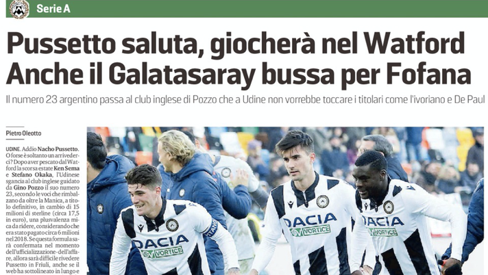 Messaggero Veneto: Pussetto saluta, giocherà nel Watford
