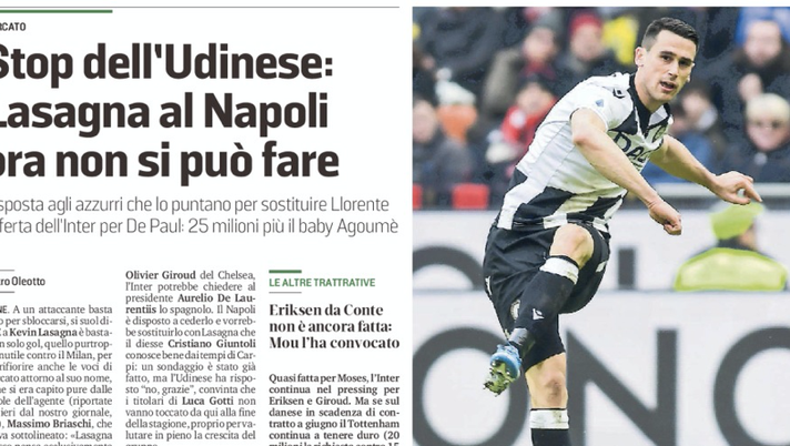 Messaggero Veneto: Stop dell’Udinese, Lasagna al Napoli ora non si può fare