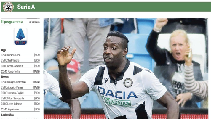 Apertura del Messaggero Veneto con Okaka al centro dell'attenzione.