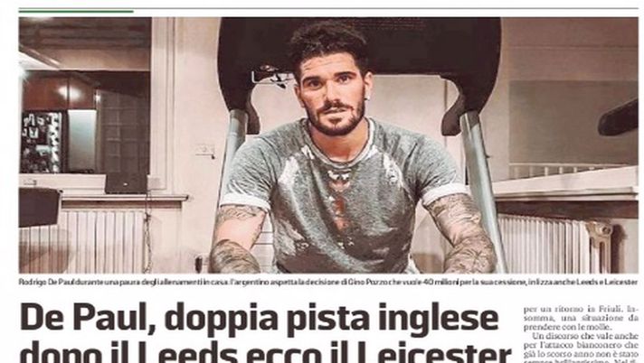 "La Premier League sembra essere sempre più interessata alle prestazioni di Rodrigo De Paul che tuttavia ha un prezzo piuttosto alto anche per i club inglesi, 40 milioni. Non pochi se si pensa che l'olandese Donny Van de Beek è passato dall'Ajax al Manchester United per 45 milioni. Gino Pozzo, tuttavia, è convinto che un titolare dell'Argentina non possa costare di meno e per questo ha respinto il primo assalto del Leeds del presidente Andrea Radrizzani, neopromosso e intento a consegnare al "guru" Marcelo Bielsa una squadra competitiva. Servirebbe però un rilancio del Leeds che finora non c'è stato (i media argentini hanno parlato di 28 milioni di euro sul piatto, quelli inglesi 31 in sterline, comunque pochi) e in questo passaggio a vuoto si è inserito il Leicester City. Secondo le ultime voci che rimbalzano dall'Inghilterra, il Leicester sta per formulare un'offerta molto vicina alla richieste di Pozzo. A quel punto tutto sarebbe nelle mani di De Paul che considera conclusa la sua avventura in Friuli, ma ha sempre detto di voler giocare la Champions".