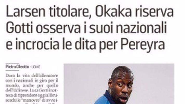 MV: “Larsen titolare, Okaka riserva Gotti osserva i suoi nazionali e incrocia le dita per Pereyra”