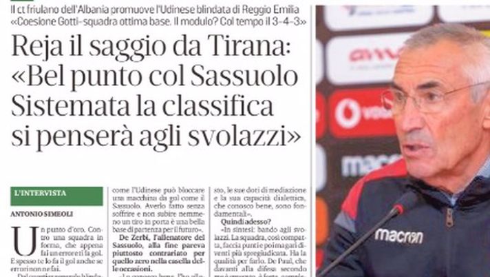 MV: “Reja il saggio da Tirana: «Bel punto col Sassuolo Sistemata la classifica si penserà agli svolazzi»”