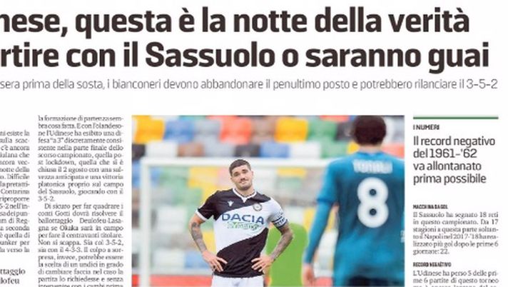 L'analisi tattica della sfida col Sassuolo nell'edizione di oggi 6 novembre del Messaggero Veneto