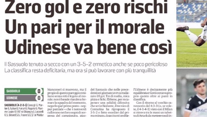 L'analisi della sfida del Mapei nell'edizione di oggi 7 novembre del Messaggero Veneto: