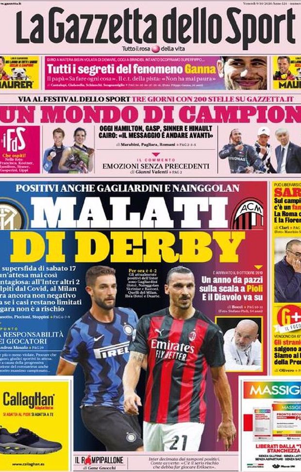 Rassegna stampa dei principali quotidiani sportivi nazionali