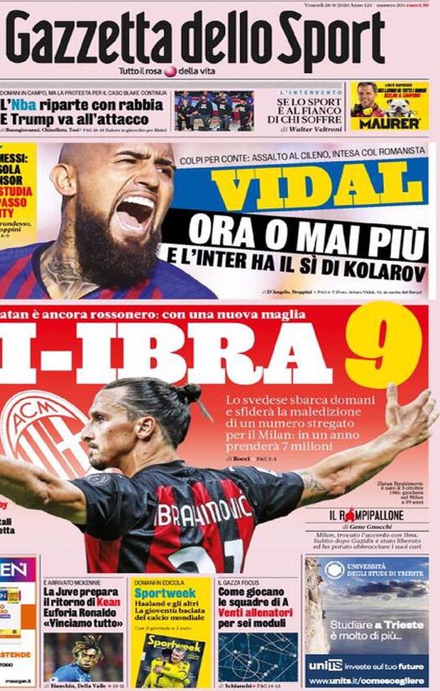 Rassegna stampa dei principali quotidiani sportivi nazionali