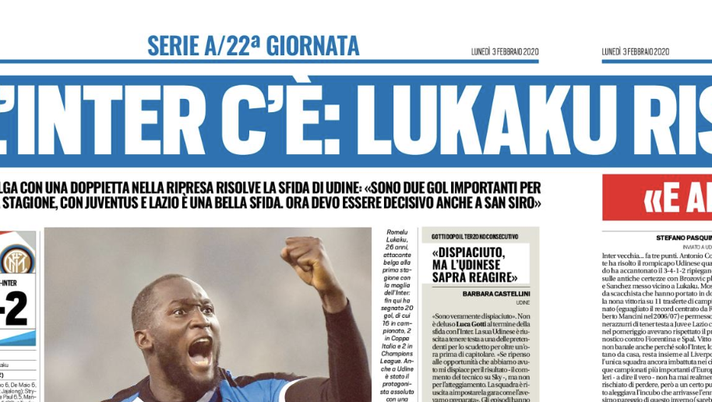 Il commento di Tuttosport alla sconfitta dell'Udinese con le parole di Gotti.