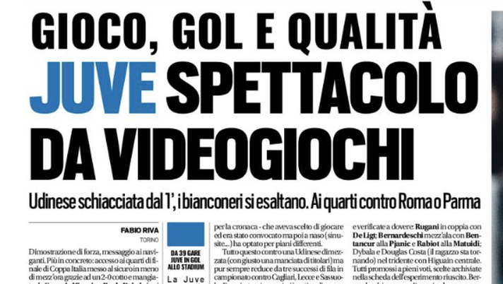 Il commento di Tuttosport alla vittoria della Juve sull'Udinese in Coppa Italia.