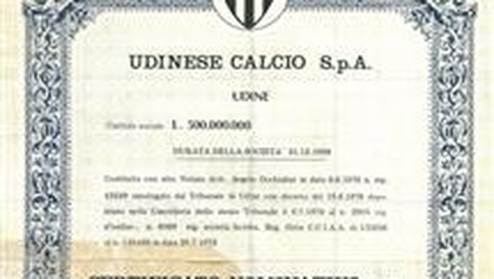 UN'idea, comunque, non nuova e che il destino beffardo unisce ancora Parma all'Udinese. Anni fa, tanti, nel 1983 quando arrivò Zico a Udine, l'ex presidente Mazza lanciò l'azionariato popolare, ma era una mossa finanziaria, che non coinvolgeva di fatto nessun tifoso. Più convincente quello che aveva fatto prima Teofilo Sanson. La prima divisione del patriomonio societario avvenne p precisamente nel 1976. Il capitale sociale era di 500 milioni di vecchie lire, un’azione costava 10 mila lire, non male per l’epoca. Le azioni furono costituite con atto notarile del dott Angelo Occhialini l’8 giugno 1976. La durata della società ha come scadenza il 31.12.1999 per cui chi oggi ne è in possesso, ha un bel ricordo, ma nulla di più. Ma l'idea era rivoluzionaria, come tante altre cadute nel vuoto.