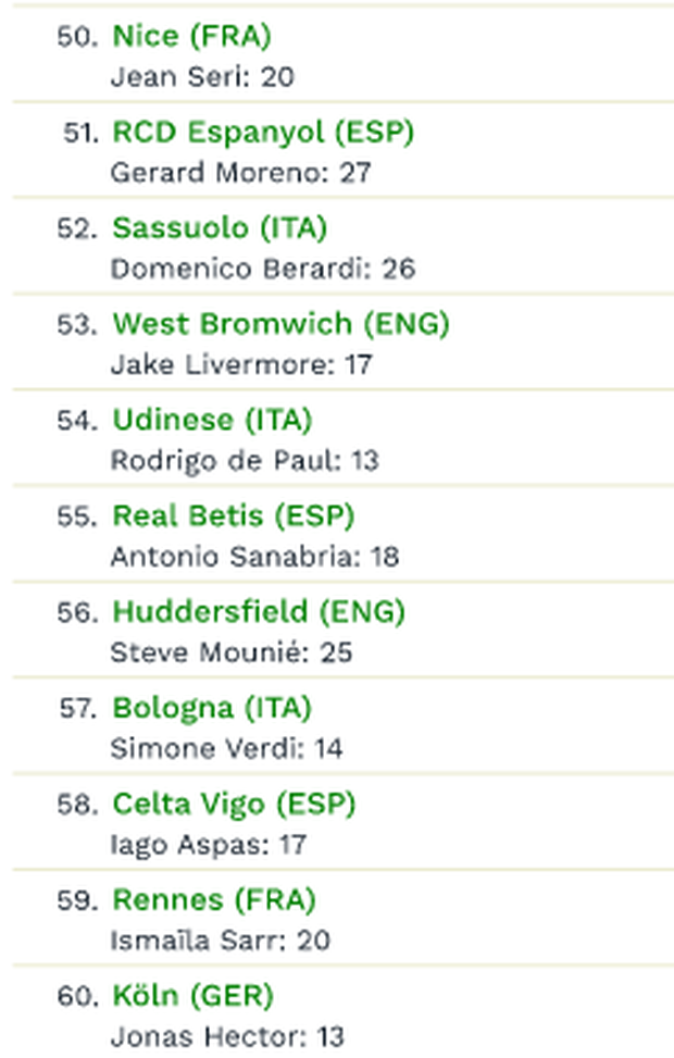 "Al 54° posto figura l'Udinese con una rosa valutata 132 milioni di euro e De Paul considerato il gioiello più importante della vetrina bianconera: