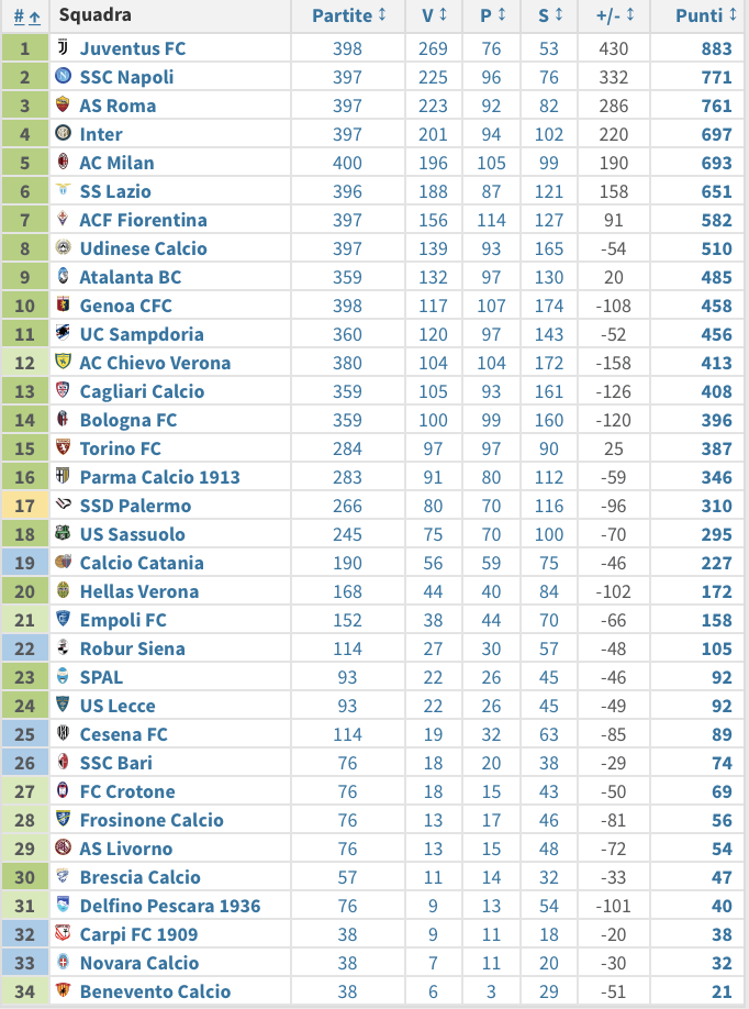 La Juve ha fatto un abisso nella classifica del decennio. L'Udinese, nonostante la crisi degli ultimi cinque anni, rimane ottava