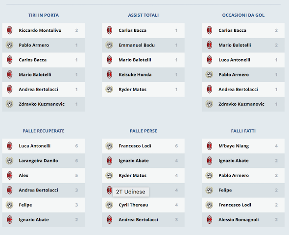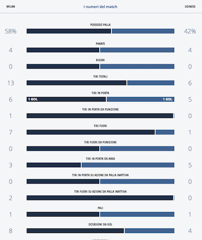 L'analisi numerica di Milan-Udinese con i dati ufficiali della Lega Calcio.