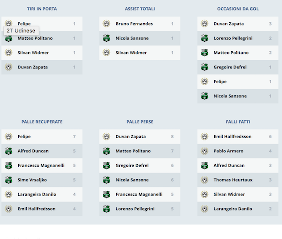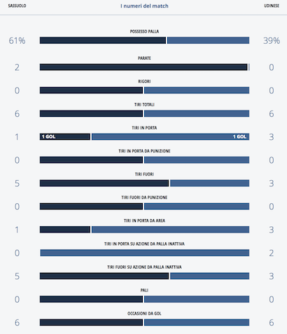 I numeri di Sassuolo-Udinese nell'analisi della Lega Calcio