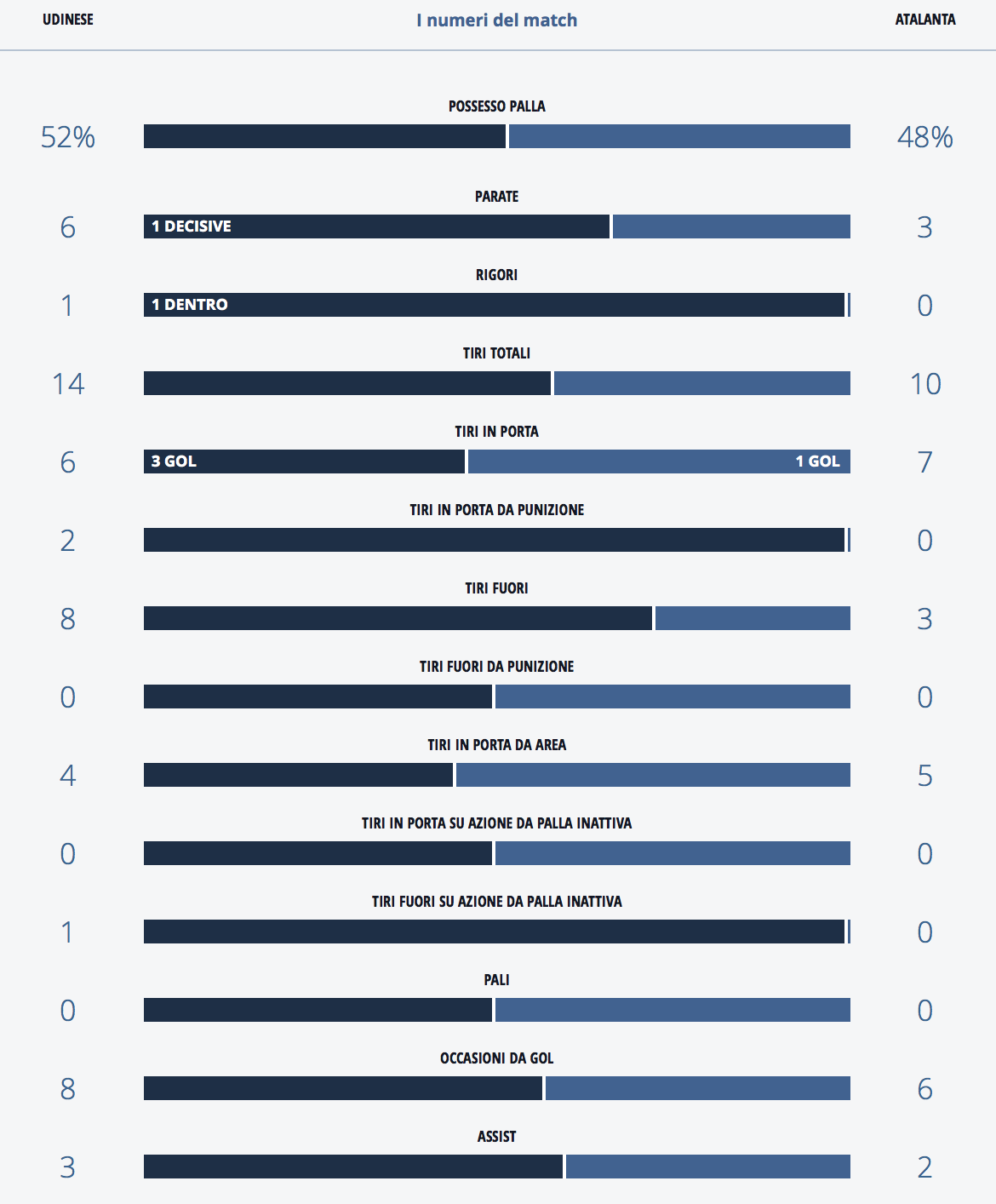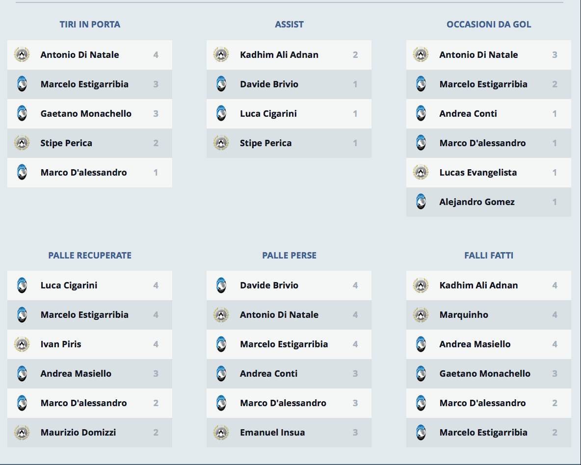 A seguire le statistiche di Udinese-Atalanta a cura della Legaseriea
