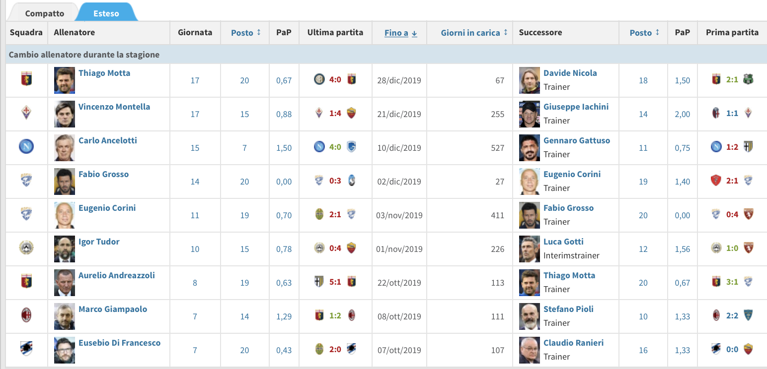 Il cambio in panchina nell'Udinese tra Tudor e Gotti è stato il più fruttifero tra quelli avvenuti in Serie A: con il tecnico veneto i bianconeri hanno cambiato marcia passando da 0.78 punti di media col croato a 1.56 con l'allenatore che si sente ancora "vice". Solo Iachini, ma con meno gare ha fatto meglio.