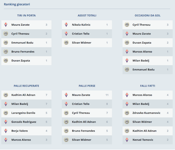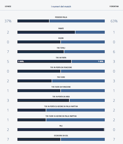 I numeri di Udinese-Fiorentina analizzati dalla Lega Calcio