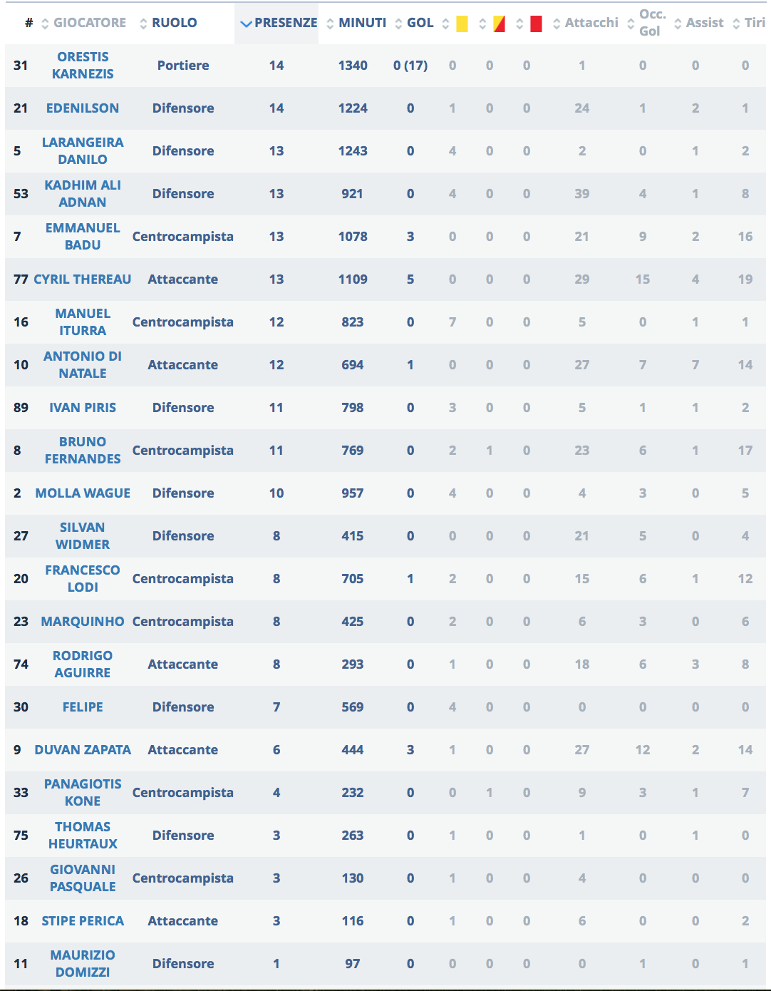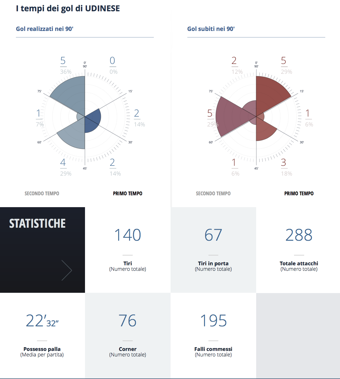 I numeri dell'Udinese analizzati dalla Lega Serie A dopo 14 giornate di campionato.