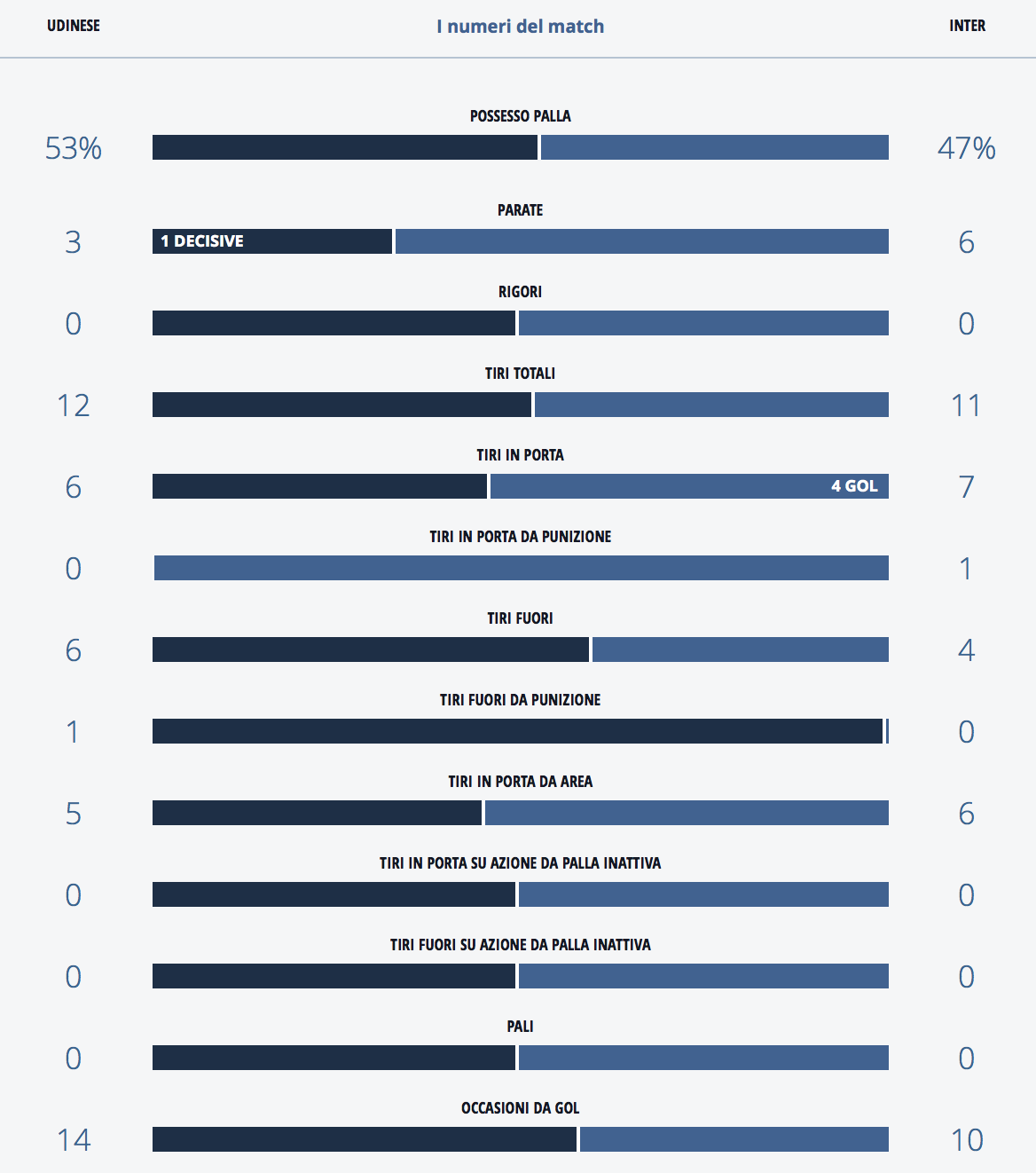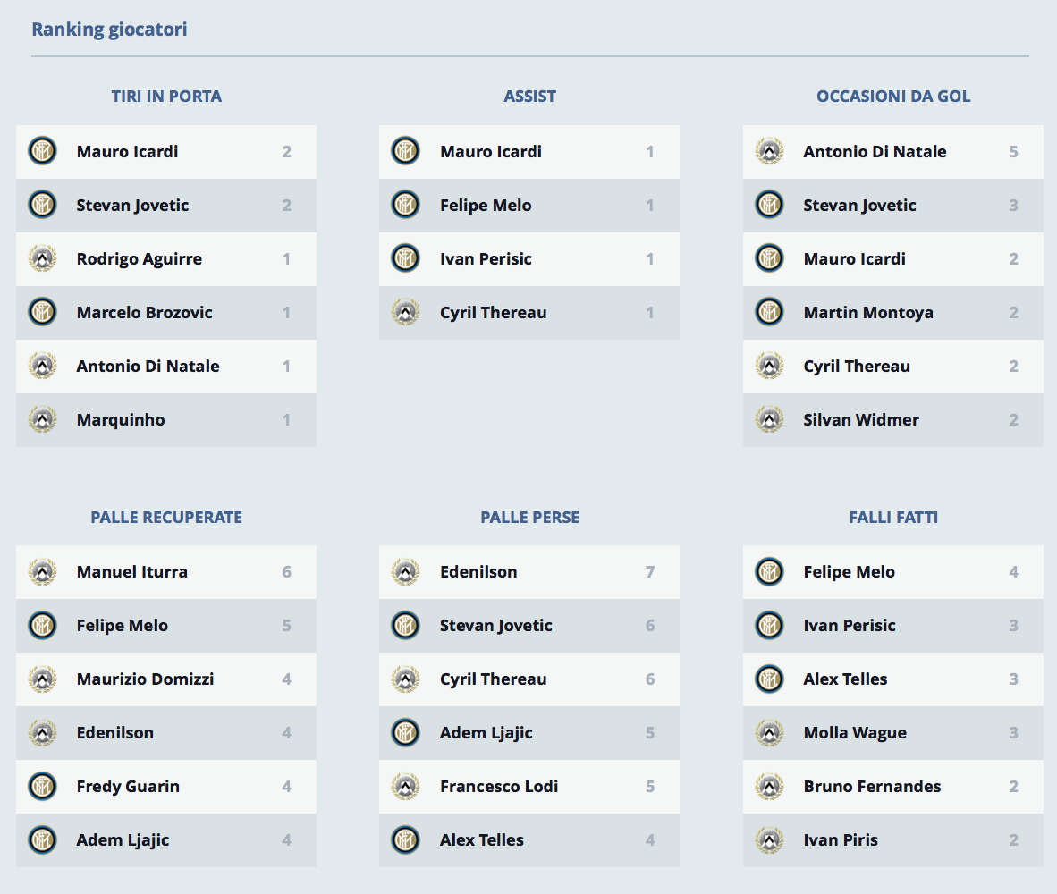 A seguire i numeri di Udinese-Inter analizzati dalla Legaseriea