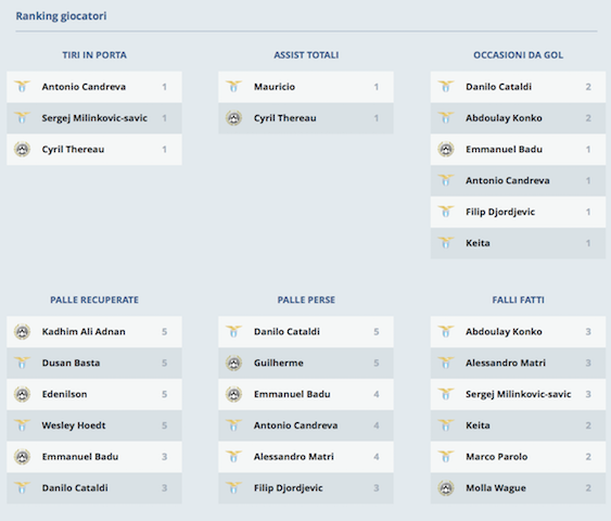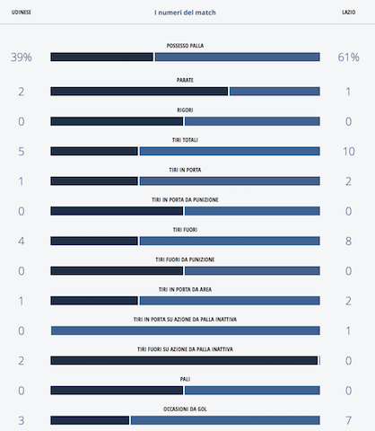 I numeri di Udinese-Lazio: per i capitolini più occasioni da gol e più possesso