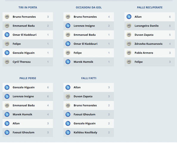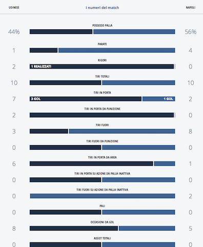 Tutte le cifre ufficiali che dimostrano la superiorità dell'Udinese sul Napoli