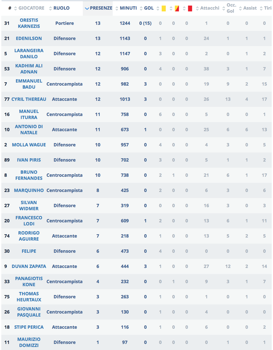 I numeri dell'Udinese analizzati dalla LegaserieA alla 13/ma giornata