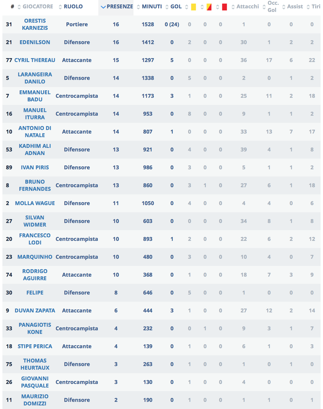 Tutti i n numeri dell'Udinese dopo 16 giornate analizzati dalla Lega Serie A