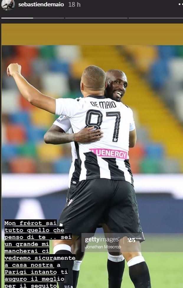 Su Instagram De Maio ha salutato il suo amico e ormai ex compagno di squadra Seko Fofana che ha raggiunto il Lens in Francia