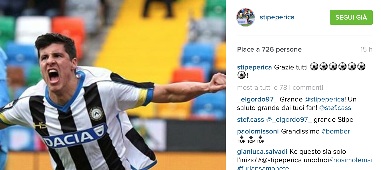 Sempre sullo stesso social anche Perica non fa mancare la sua foto di esultanza: "Grazie a tutti", scrive il croato. Grazie a te, rispondiamo noi.