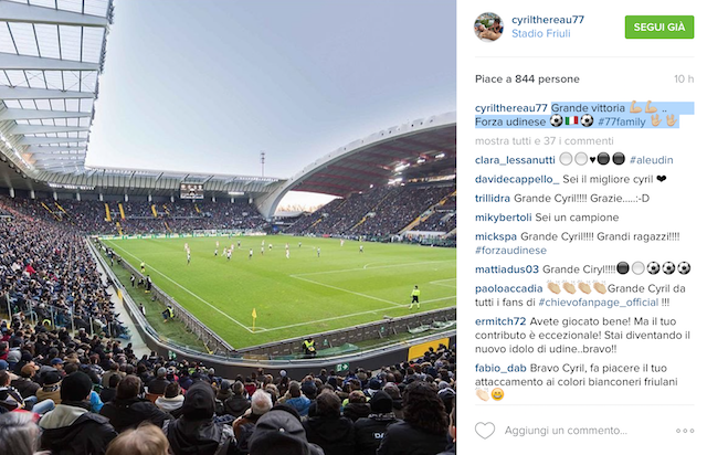Anche Cyril Thereau non ha voluto far venire meno il suo saluto attraverso Instagrama fine gara: "Grande vittoria, forza Udinese"