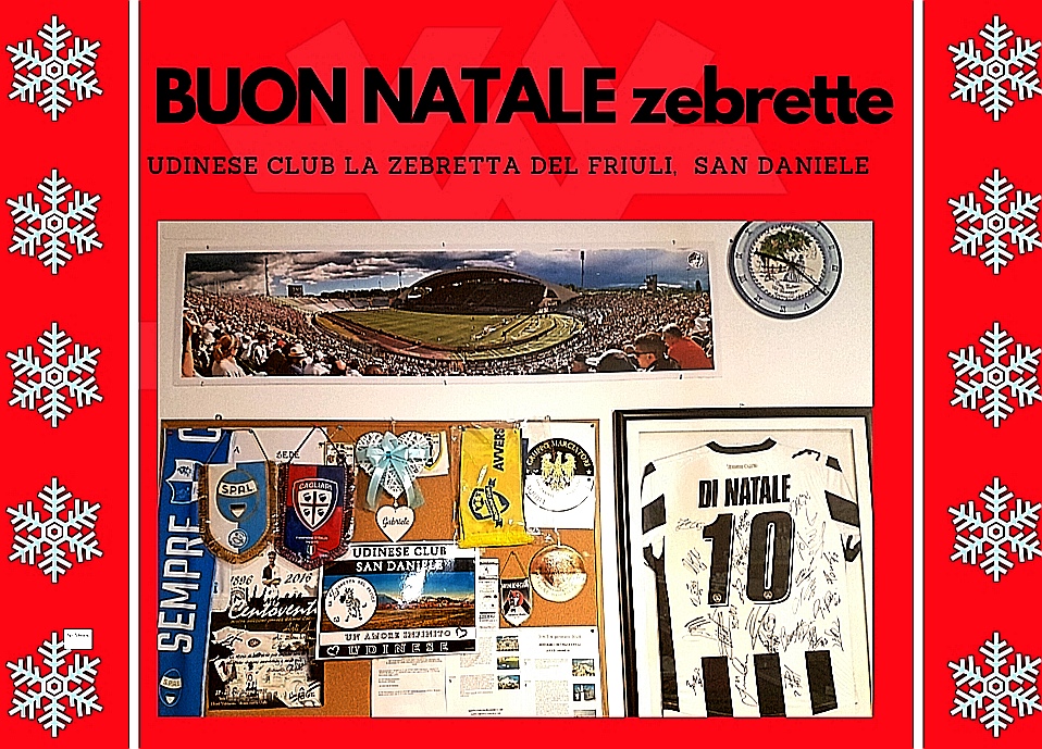 Lo storico e ineguagliabile Club "Le Zebrette del Friuli" augurano a tutti i tifosi (ma non solo) un sereno Natale e Buone feste, sperando ovviamente che la squadra del cuore possa dare ulteriori soddisfazioni. "Il Presidente, tutto il direttivo dell'Udinese Club "la Zebretta del Friuli" augurano ai soci ed ai sostenitori un felice Natale"